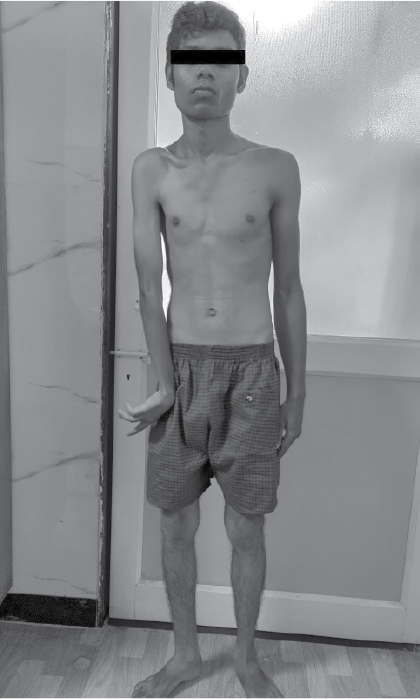 Figure 1. Right-sided wasting with flexion deformity at wrist joint.