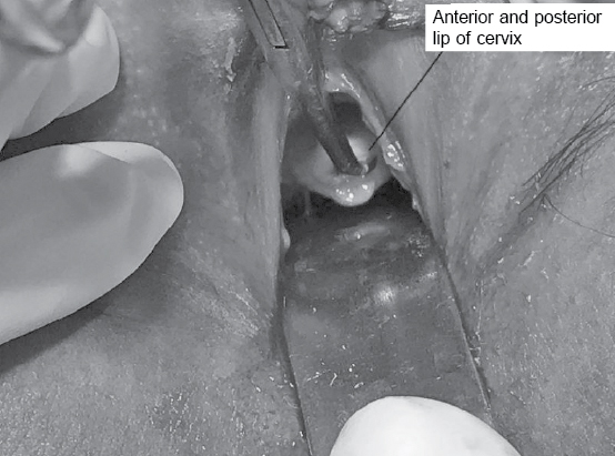 Per speculum examination showed a small-sized cervix with both anterior and posterior lips (Fig. 4).
