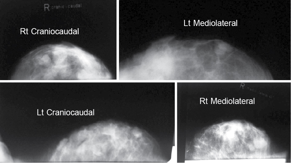 On her last clinical visit on 7th September, 2016, the radio mammography and sonography reports revealed 10 fibroadenomas in the right breast and 5 in the left breast (Fig. 2).