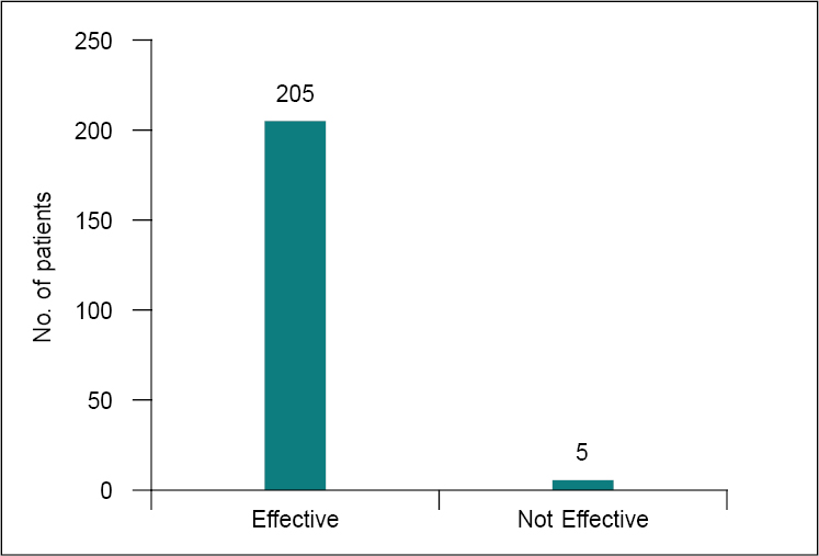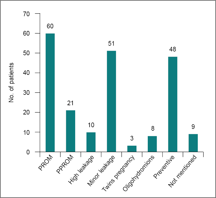 The study included 210 expecting mothers aged 21 to 41 years diagnosed with PROM, PPROM, minor or high leakage, twin pregnancy or a history of PROM in the last pregnancy. Most patients were diagnosed with PROM, minor leakage or at risk of PROM due to medical history (Fig. 1). Patients were treated as the doctor recommended. Most study participants (97%) found it effective in preventing leakage of amniotic fluid from ruptured fetal membranes and in prolonging the gestational age (Fig. 2). According to our survey, it was well tolerated by most patients. Only 3 subjects had adverse effects, although the prevention of leakage was effective. Clinicians found the novel combination of amino acids, vitamins and probiotics to be an excellent remedy for sealing the rupture of fetal membranes in PROM, PPROM and in the prevention of the same.