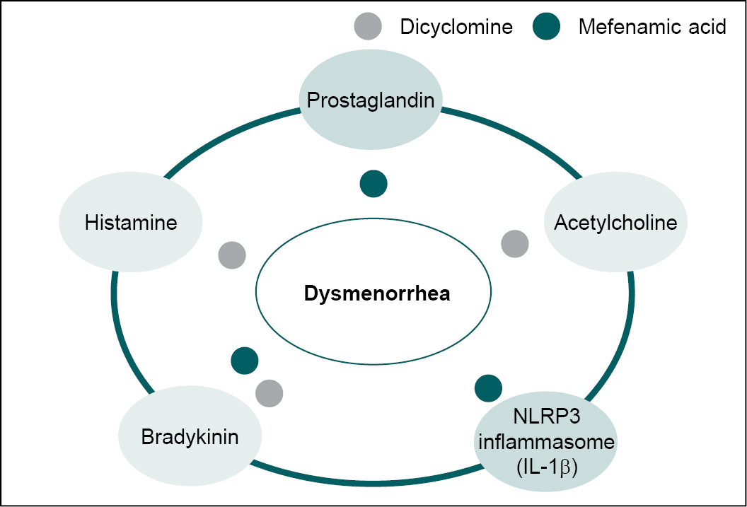- Rao KA, Chandra S, Kasture PN. Role of prostaglandins in pathogenesis of dysmenorrhea and place of mefenamic acid and dicyclomine in its management. Indian J Clin Pract. 2022;32(10):27-34.