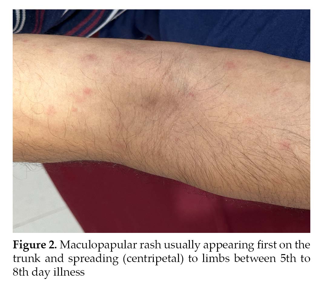positive patients infected with certain strains of scrub typhus, a dramatic decrease in viral load has been observed, sparking research interest.8 Treatment choices involve doxycycline and azithromycin, either individually or in combination, depending on the clinical scenario. Our patient responded favorably to treatment, emphasizing the importance of timely intervention. If a patient does not respond, re-evaluation of the diagnosis or consideration of drug resistance is crucial.9