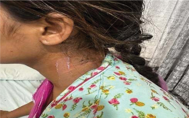 Figure 1. Profile picture of patient showing scar mark on lateral side of neck (post-excisional).