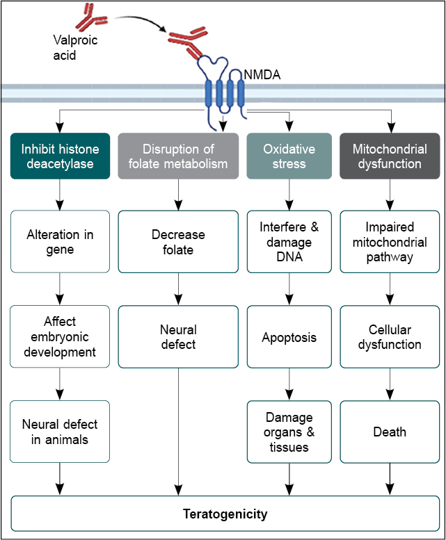 - Fathe K, Palacios A, Finnell RH. Brief report novel mechanism for valproate-induced teratogenicity. Birth Defects Res A Clin Mol Teratol. 2014;100(8):592-7.