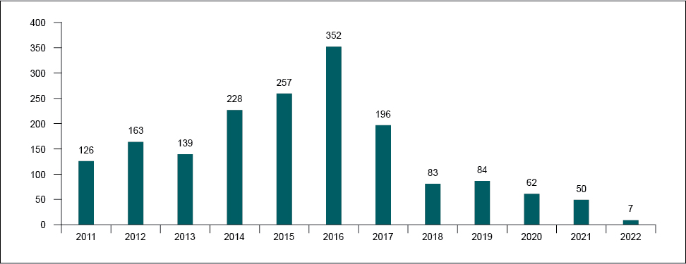 Up to April 2022, 93 of the 134 centers contacted did not complete the questionnaire because they said the drug was not in use in the centers since the guidance was issued in 2016.