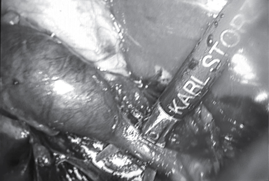 and proper surgery. The fourth (lateral) trocar is used to grasp the fundus of