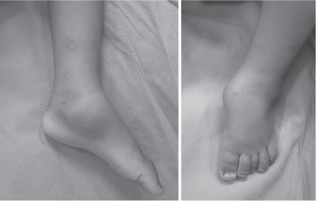 Vitals were stable and child was afebrile. On examination of left foot, it was