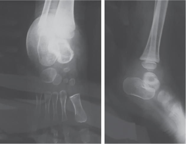 cortex (Fig. 2). On needle aspiration from talus, we found sanguineous fluid.
