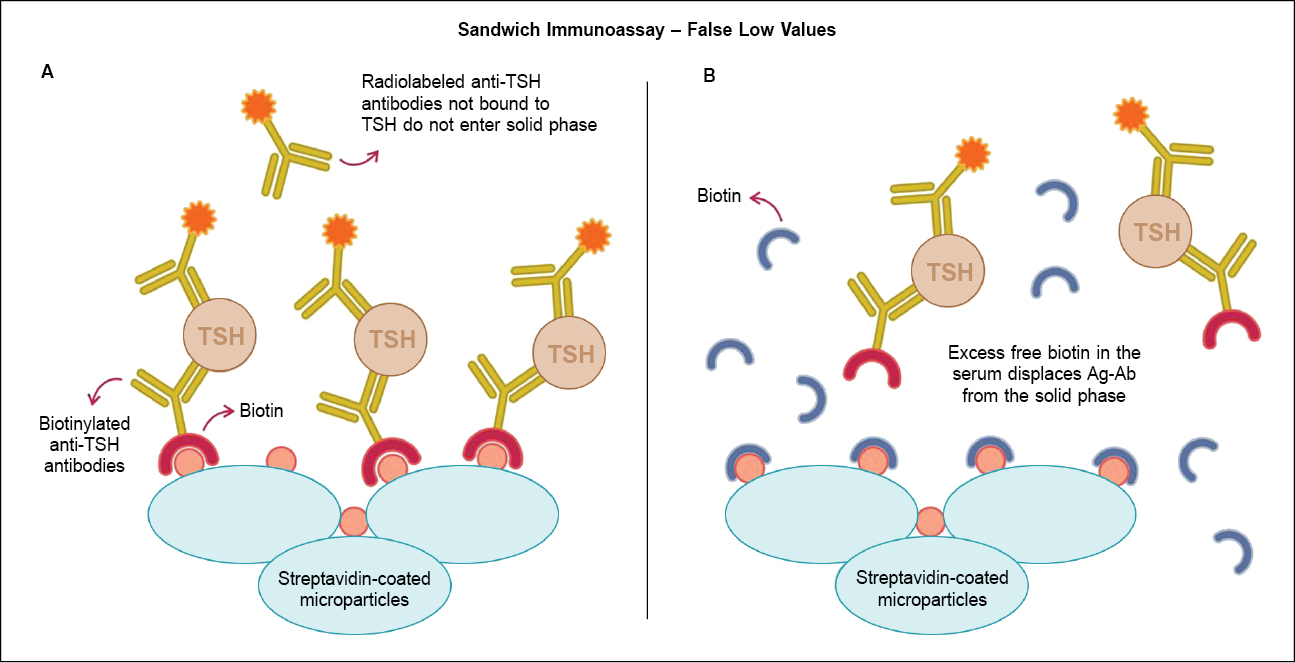 eligible publications and articles published before April 2024 on drug-induced alterations in TFTs. Results: The common mechanisms by which drugs alter TFTs include assay interference and alterations in levels or affinity of thyroid-binding proteins (TBP). High-dose biotin can result in erroneous TFTs by interfering with immunoassays that utilize streptavidin-biotin