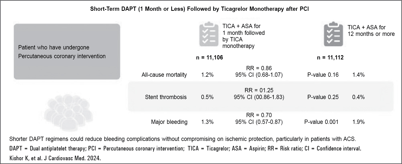 DAPT, even a 1-month DAPT duration, followed by monotherapy, offers favorable outcomes, including reduced all-cause and cardiovascular mortality1,4.