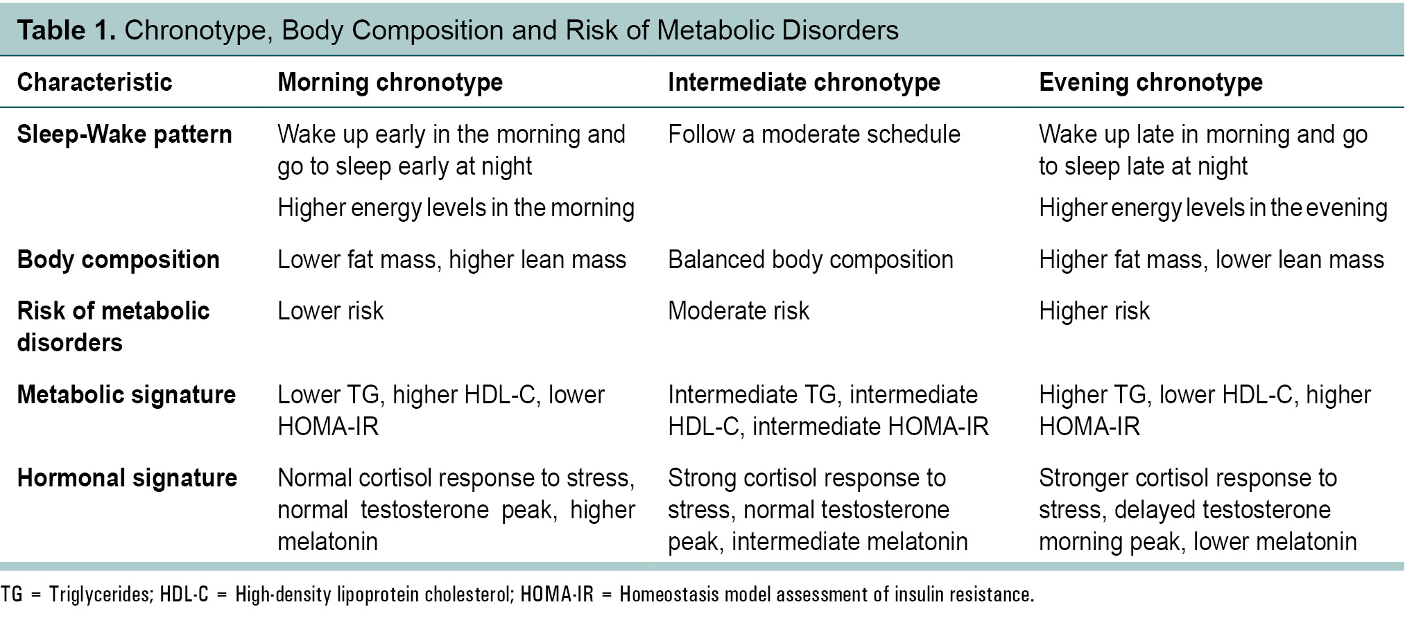 to be independent of obesity. Studies show that individuals with an evening chronotype have a significantly higher mean percentage of body fat, while those with a morning chronotype tend to have a higher percentage of lean mass