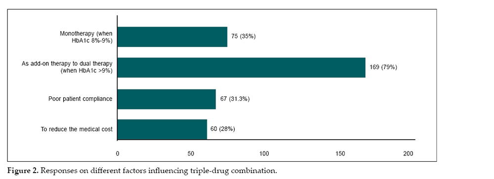 In clinical practice, comorbidities play a significant role in determining the choice of therapy; 53.3% of respondents considered conditions such as cardio-vascular disease and chronic kidney disease while prescribing. These findings emphasize the importance