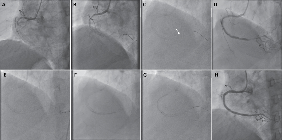 mid segments, (G) drug-eluting balloon treatment in the proximal segment